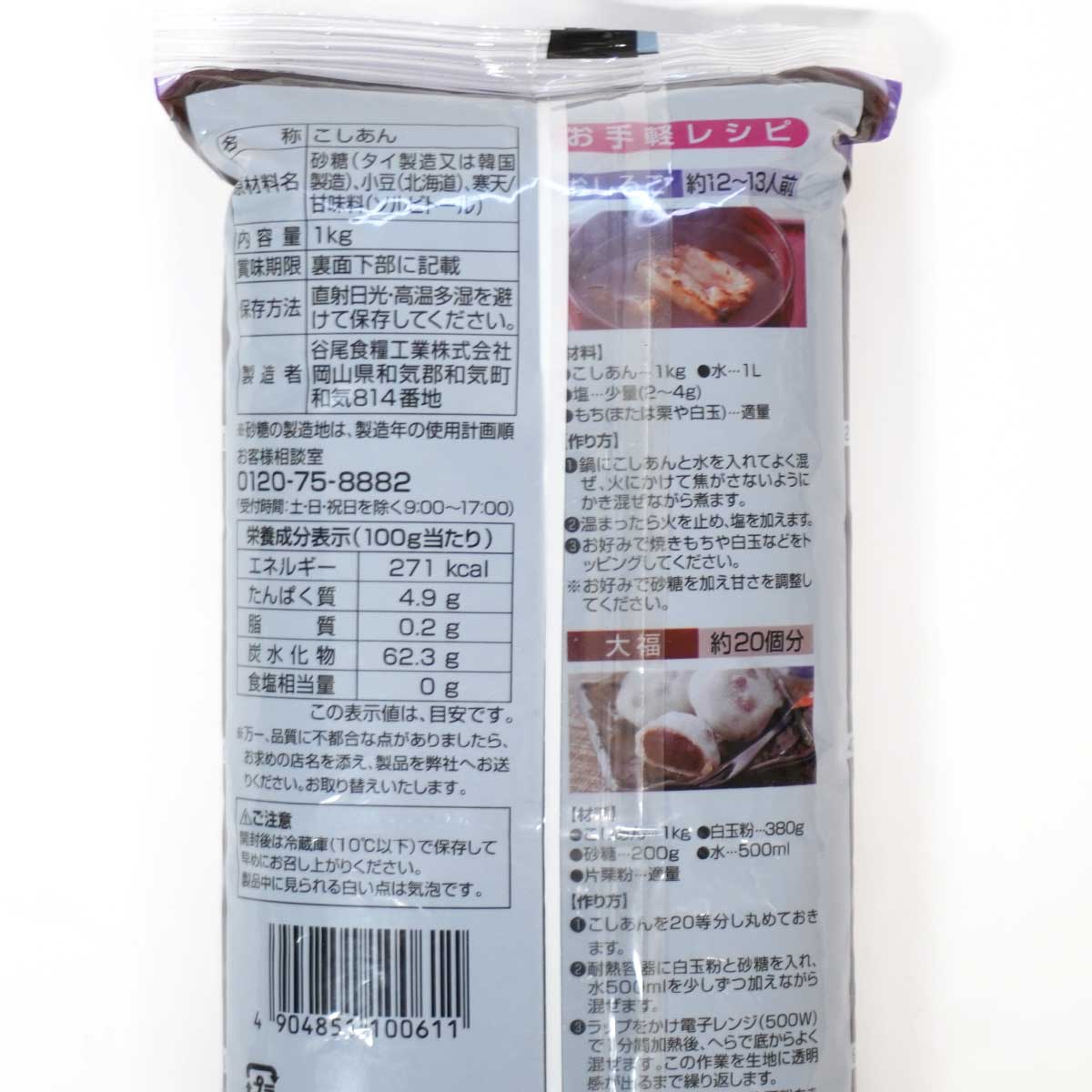 砂糖(タイ製造又は韓国製造)、小豆(北海道)、寒天/甘味料(ソルビトール)